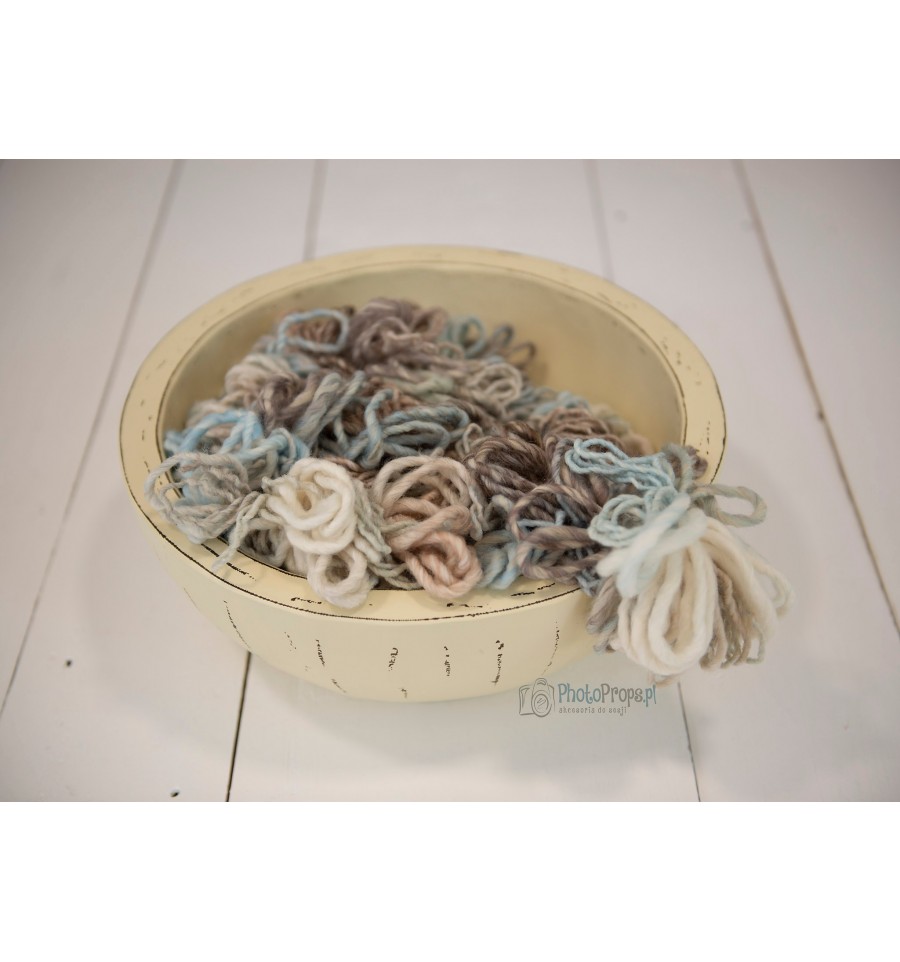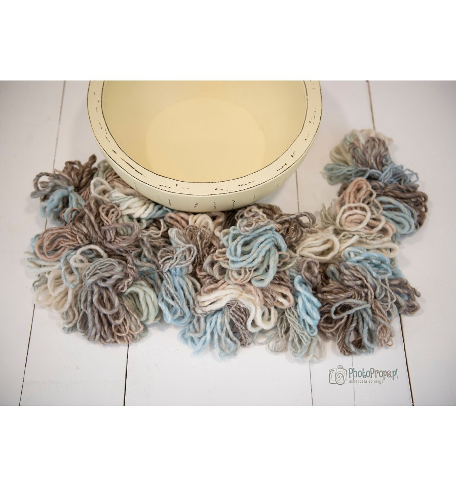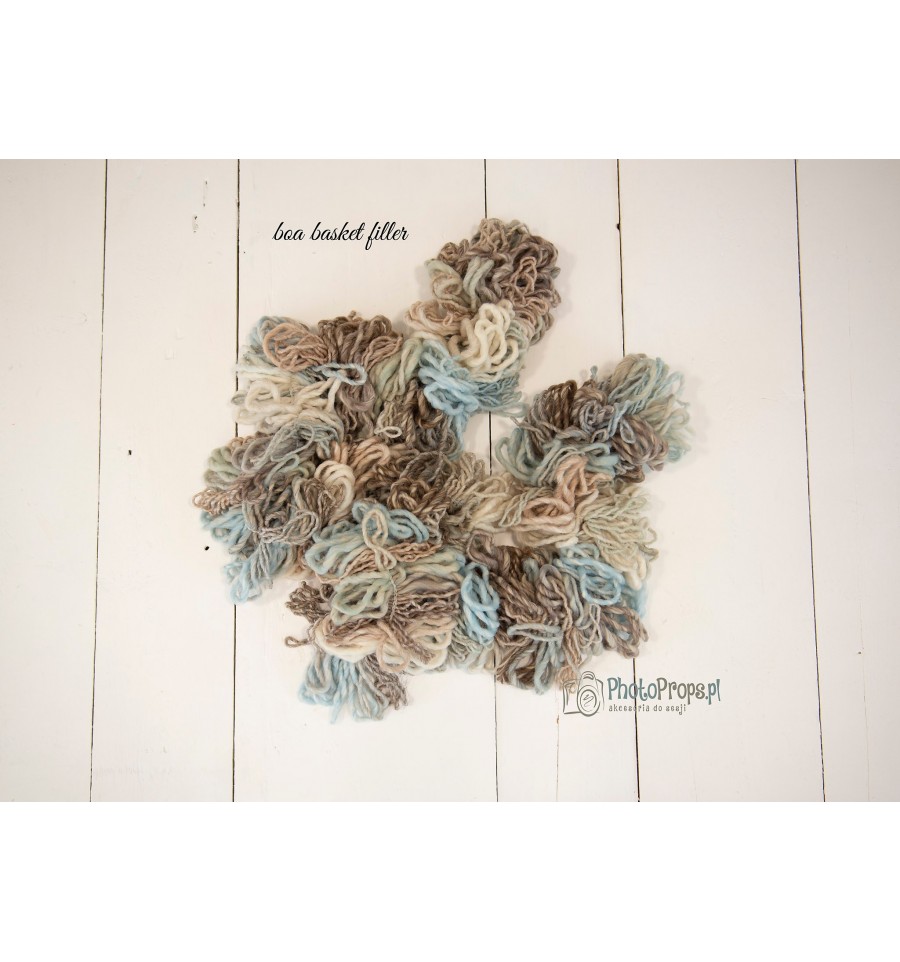 Korbfüller mit interessanter Struktur für Babyfotografie. Ideal als Unterlage oder zum Auskleiden von Körbchen, Schalen usw. Der Korbfüller hat eine Boa-Form 1,4 Meter lang und kann flexibel eingesetzt werden.