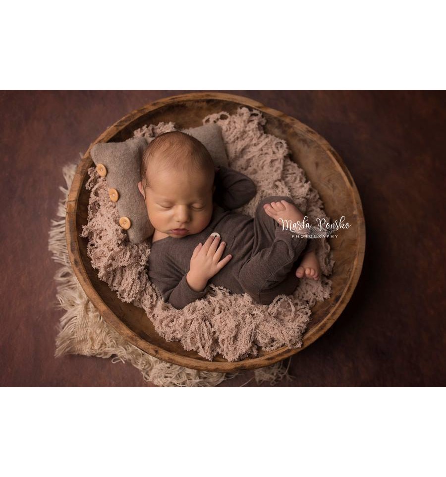 Handmande boa filler stuffer for newborn photo sessions that perfect fits in shots that contain wooden props such as baskets, buckets and bowls.