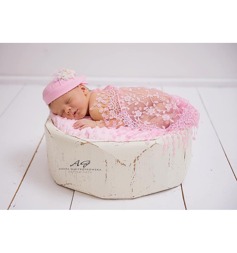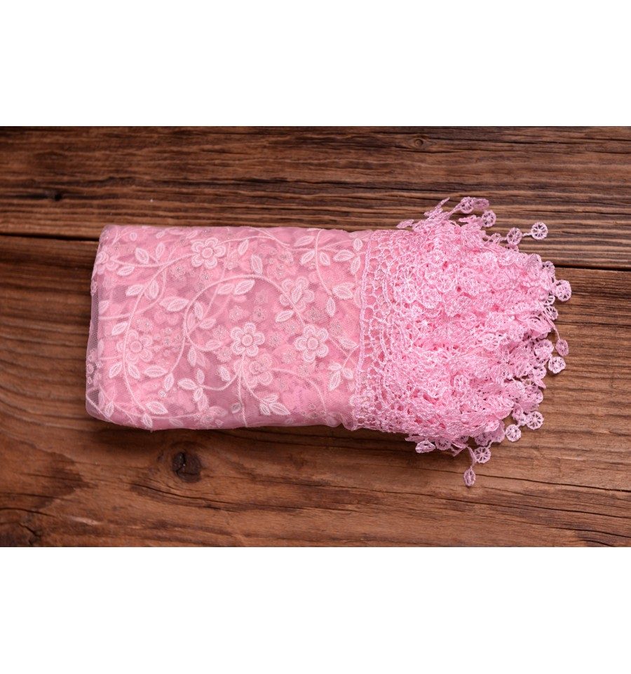 Owijka floral Wrap jest w kształcie trójkąta z ozdobnym wykończeniem kolor: jasny róż