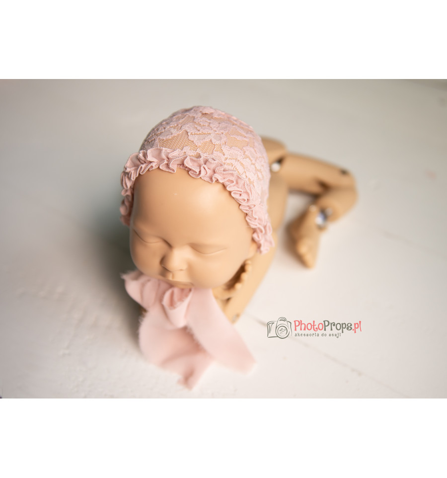 Pięknie wykonana kwiatowa bonetka do noworodkowych sesji zdjęciowych.