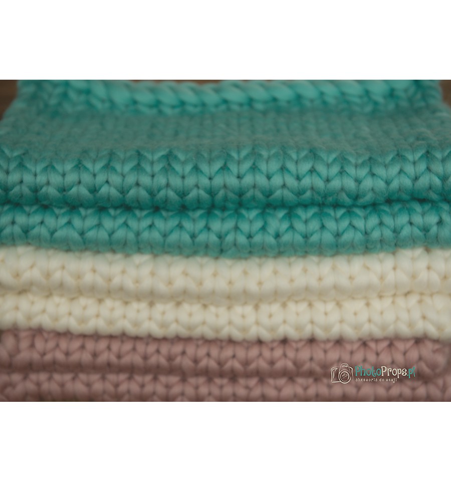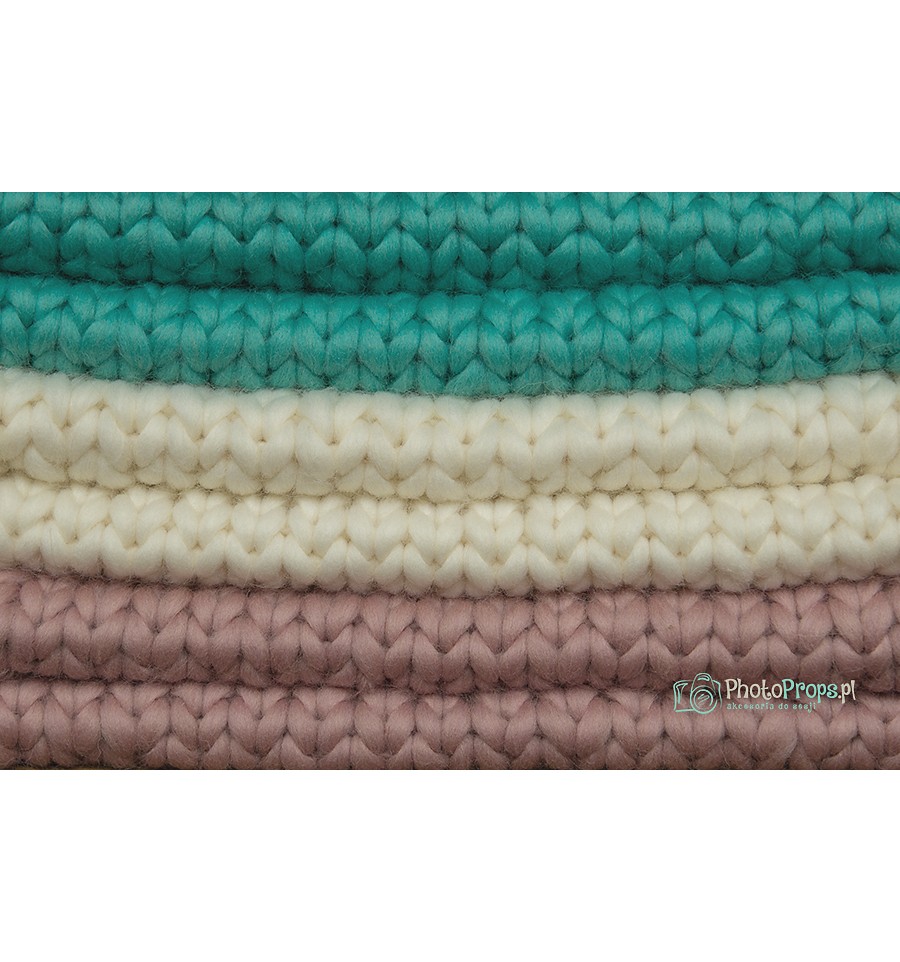 Ręcznie wykonany kocyk z wełny czesankowej przeznaczony do wykorzystania jako element sesji fotograficznej niemowlaczków. Świetnie sprawdza się jako kocyk na którym leży dziecko podczas sesji.