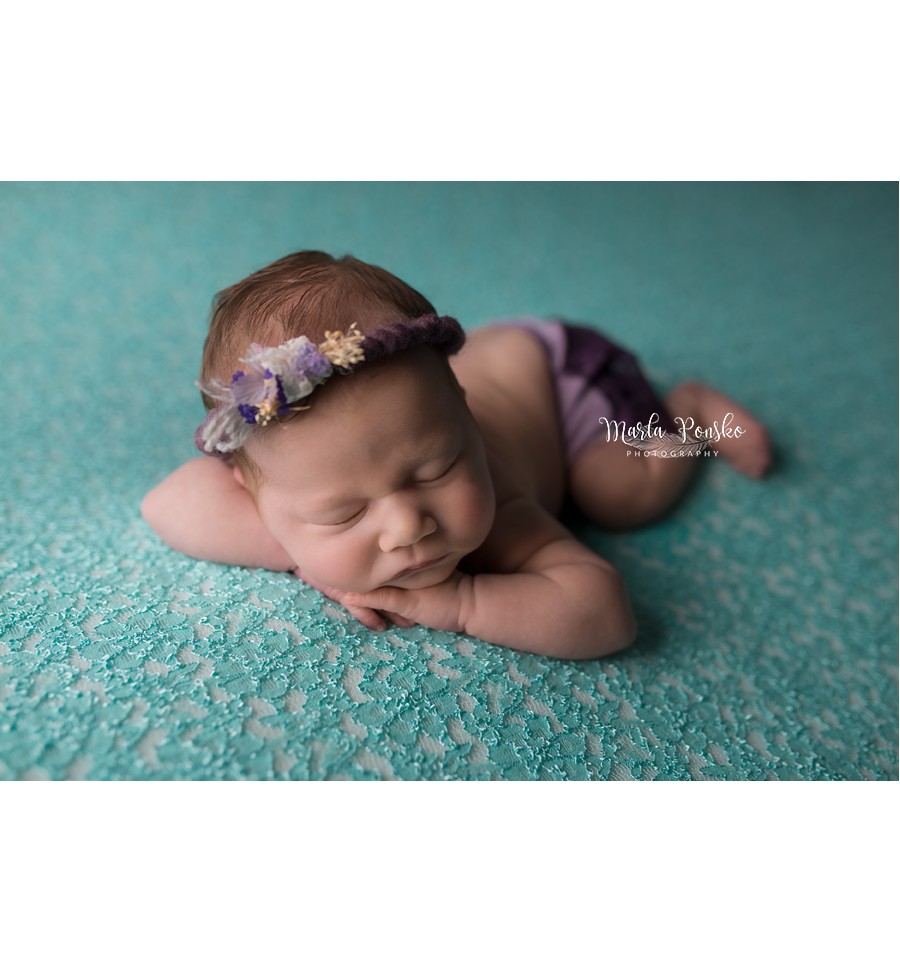 Materiał z elastycznej koronki w kwiatowy wzór jest idealnym rekwizytem do sesji zdjęciowych noworodków i dzieci. koronka jest gruba Kocyk jest uniwersalny, w zależności od kolorystyki tła pod materiałem, każde zdjęcie wychodzi inaczej. Jeden kocyk wiele pomysłów :)